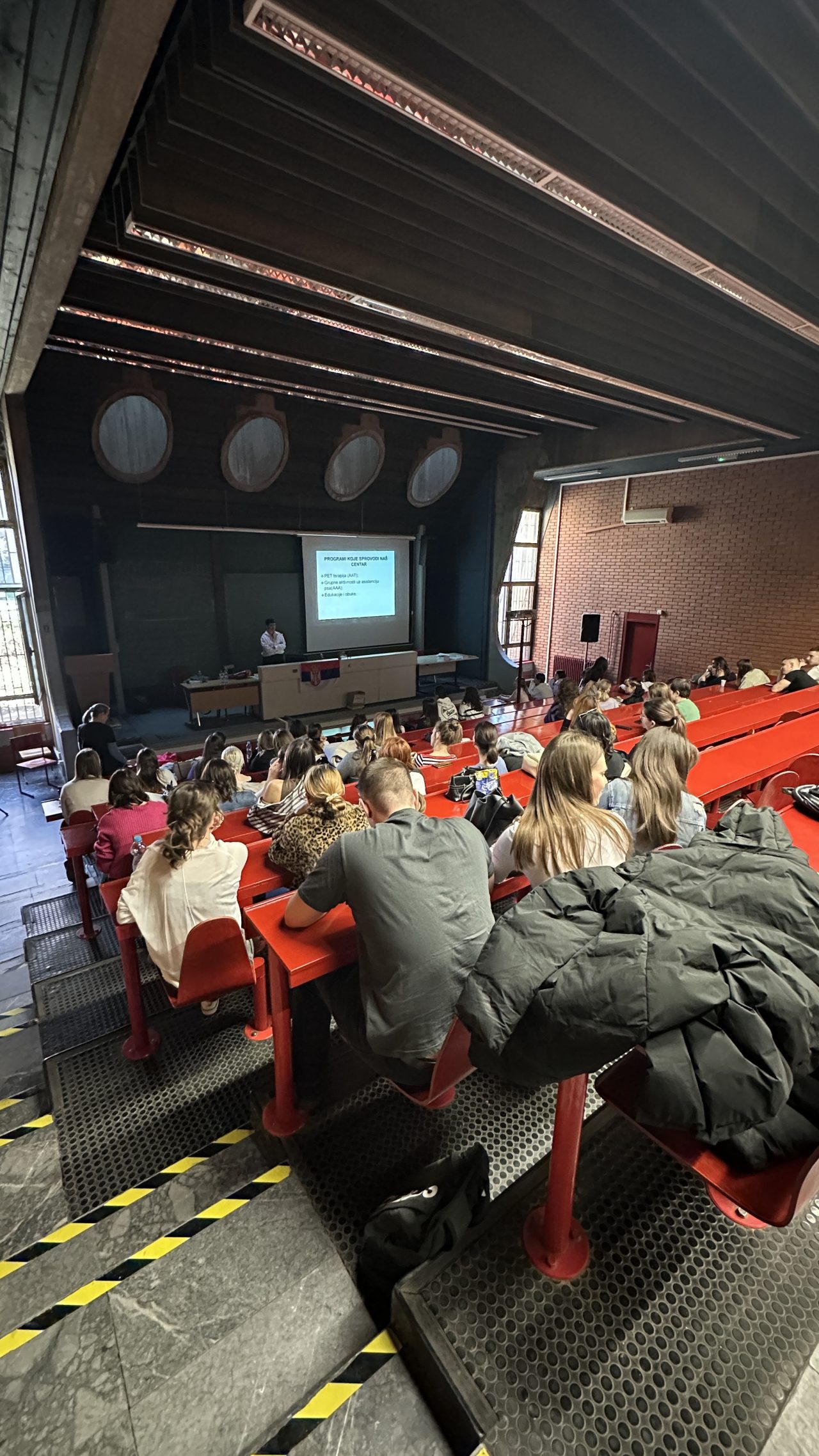 Na Filozofskom fakultetu odžano je predavanje za studente na temu “Terapije uz asistenciju terapijskih pasa za decu sa smetnjama u razvoju”. Pričali smo o psima, njihovim obukama i svemu što moraju da prođu da bi postali terapijski psi, takođe teme su bile i podrška deci sa smetnjama u razvoju.